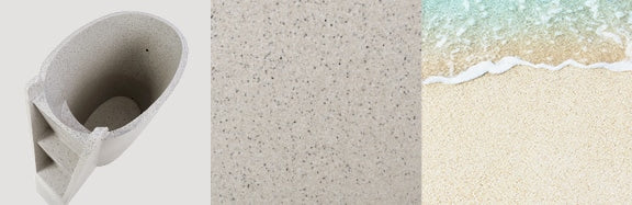 The range features soothing colours of nature including sand, storm, snow and marble. Each bath is individually created and provides the same organic texture variations found in nature.