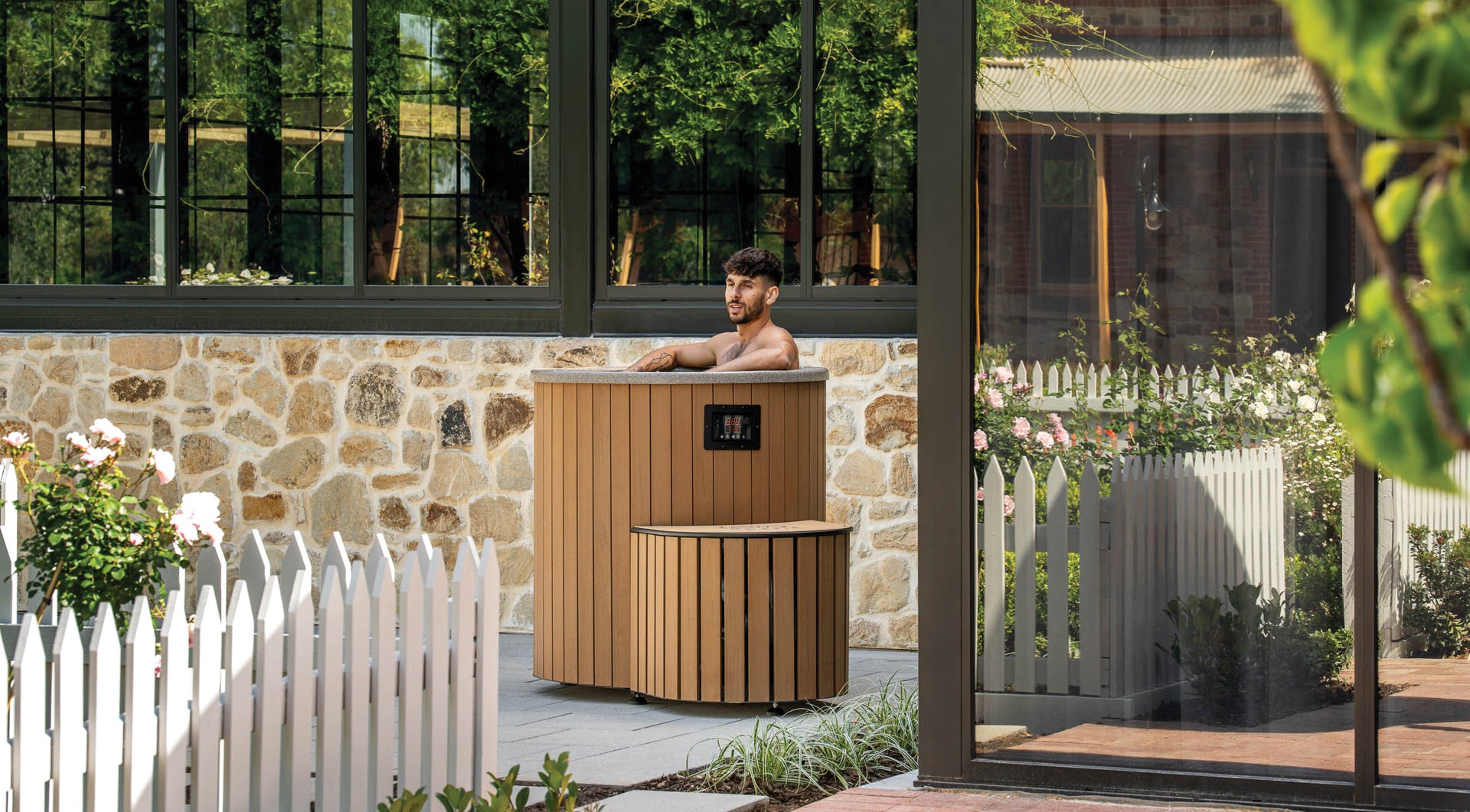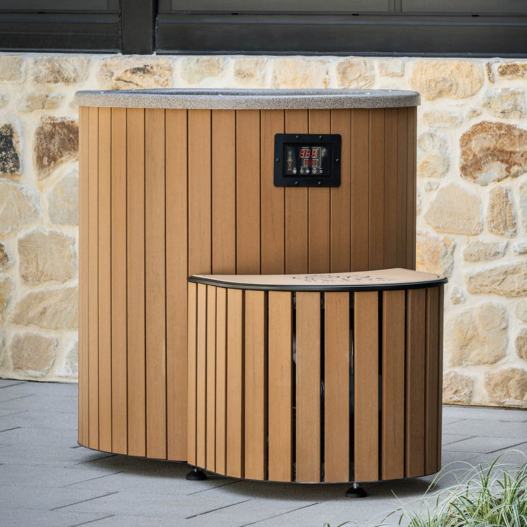 The easy to clean and maintain composite finish blends in well with any wooden sauna set up, outdoor landscape area or indoor wellness space.