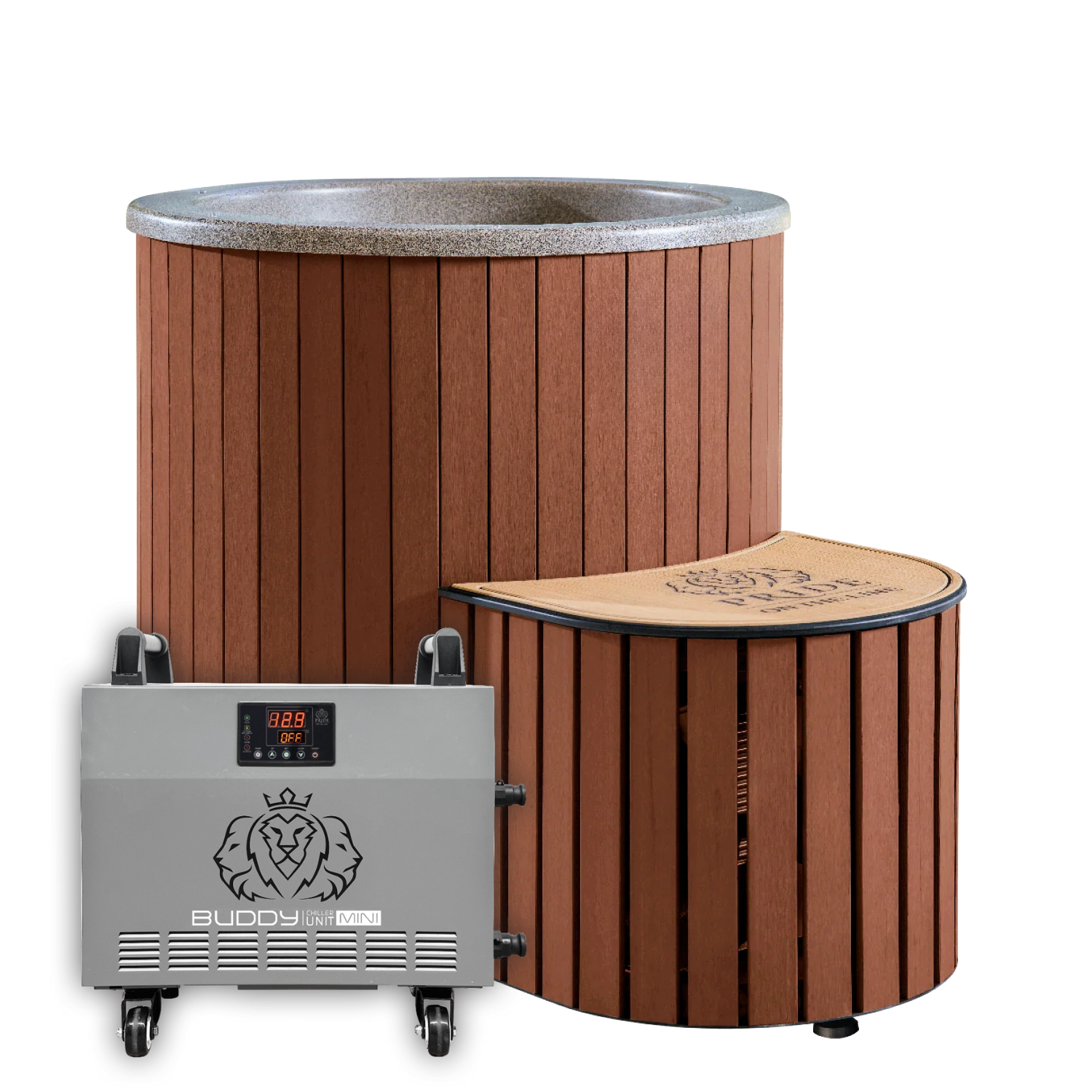 Enjoy the sleek aesthetic and robust design of the integrated Una ice bath, with flexible cooling options to suit your needs. You can choose the bath without a chiller and add ice, or pair it with an externally fitted Buddy or Buddy Mini Chiller unit.